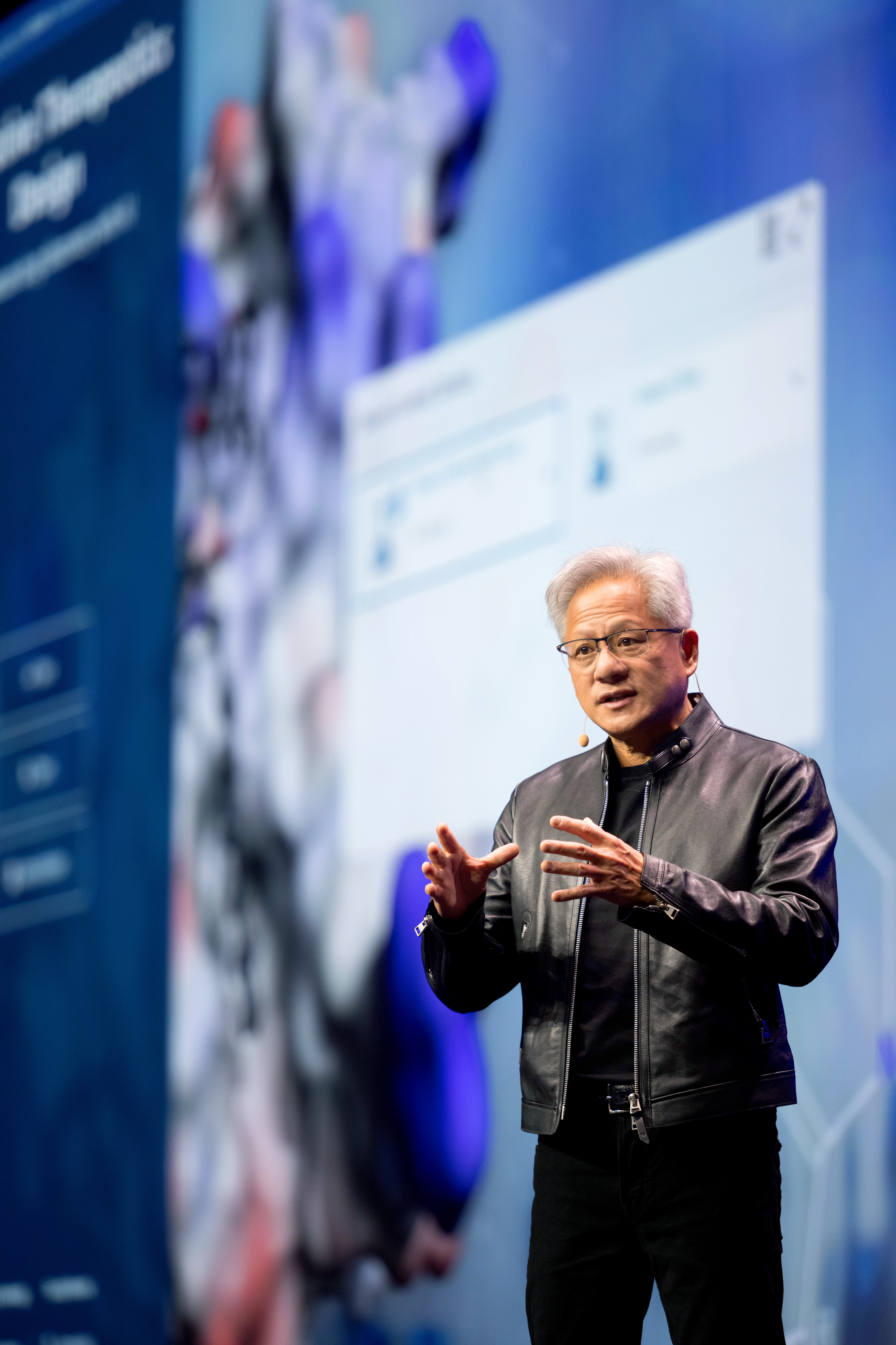 Podczas konferencji miałem okazję porozmawiać z legendarnym szefem NVIDII. Jen-Hsun Huang roztaczał wizję tzw. modeli świata przemysłowego (Industry World Models). Standardowe modele językowe (LLM), z których korzystamy na co dzień, opierają się na składni, słownictwie i wartościach.