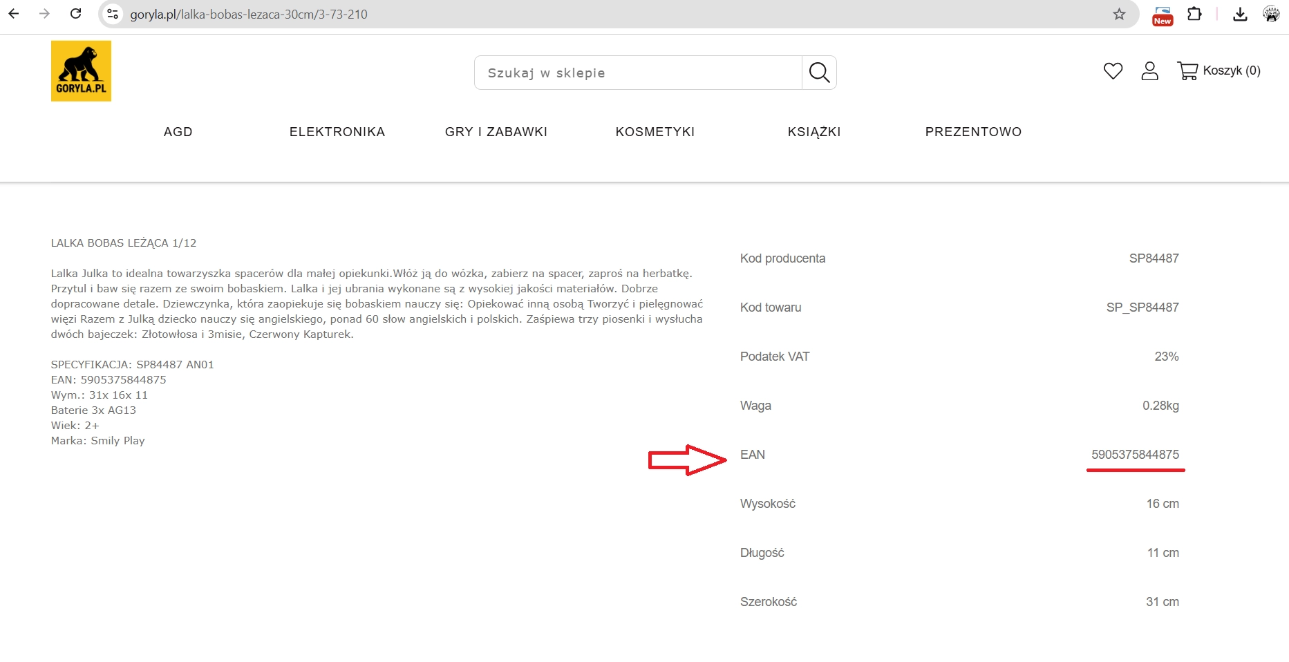 Dodatkowym błędem, jak wskazuje, jest pozostawienie kodów EAN w opisach produktów.