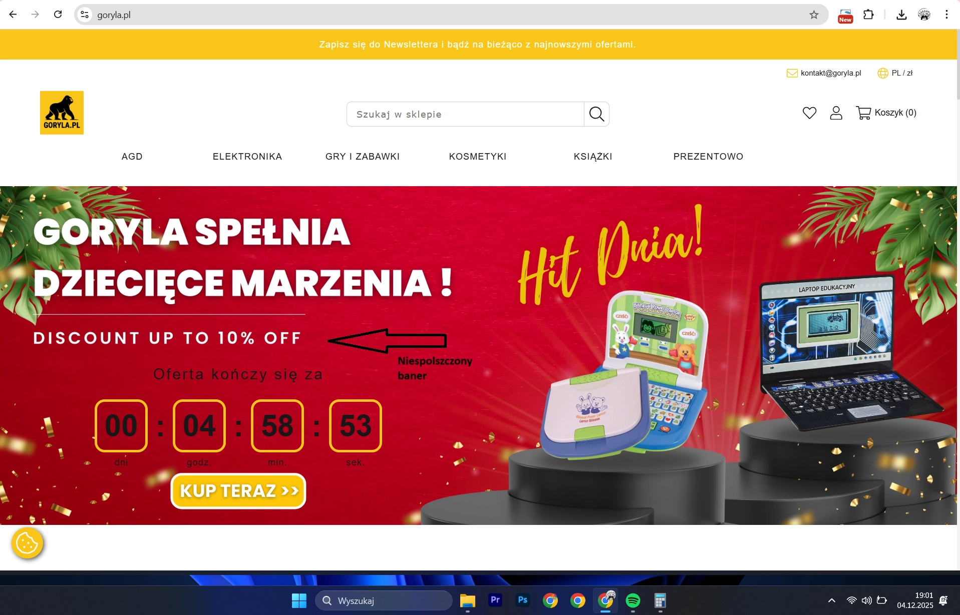 niedokończony baner na stronie głównej, który nie został nawet w pełni spolszczony,