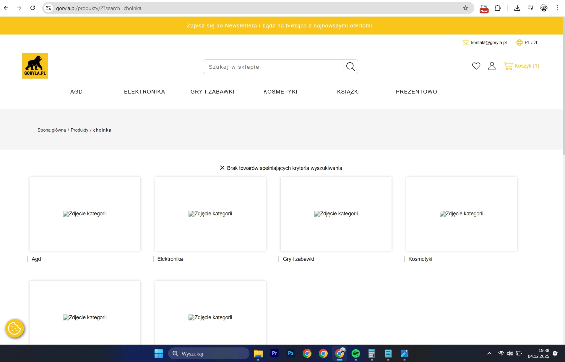 „Po wpisaniu frazy, która nie zwraca wyników, otrzymujemy stronę, na której ktoś zapomniał dodać grafik kategorii. To nie jest błąd ładowania – tych grafik po prostu nie ma.”