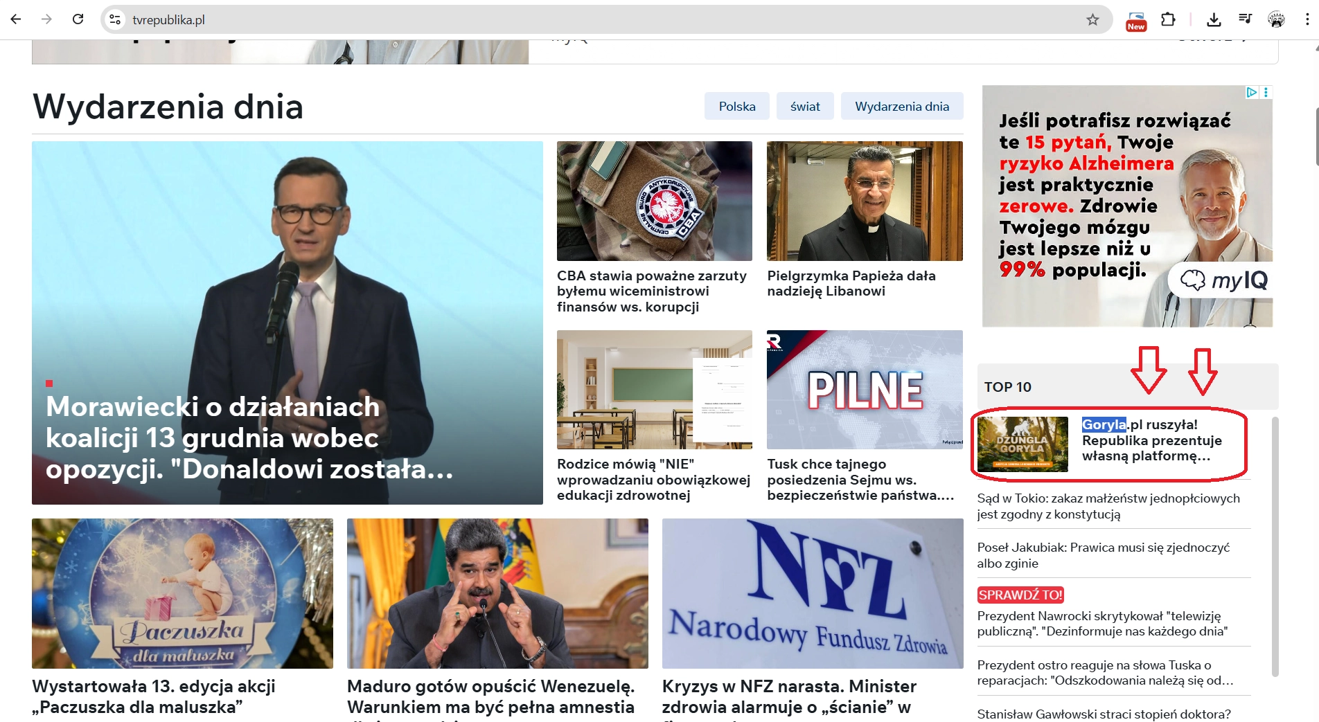 Goryla.pl deklaruje, że dysponuje 10-milionowym zasięgiem dzięki powiązaniu z TV Republika. Jednak, zdaniem eksperta, te dane nie znajdują potwierdzenia w aktywności odbiorców.
