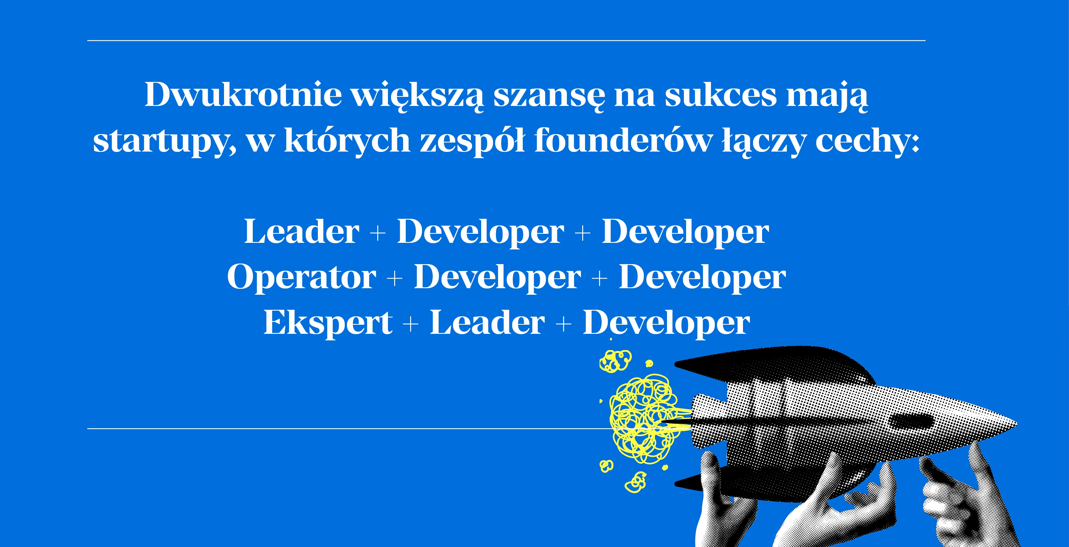 Na podstawie tej charakterystyki przeanalizowali sukcesy ponad 21 tys. startupów i doszli do wniosku, że kluczem, do sukcesu są 3 kombinacje cech. Dwukrotnie większe szanse na sukces miały startupy, których zespoły miały następujący skład: