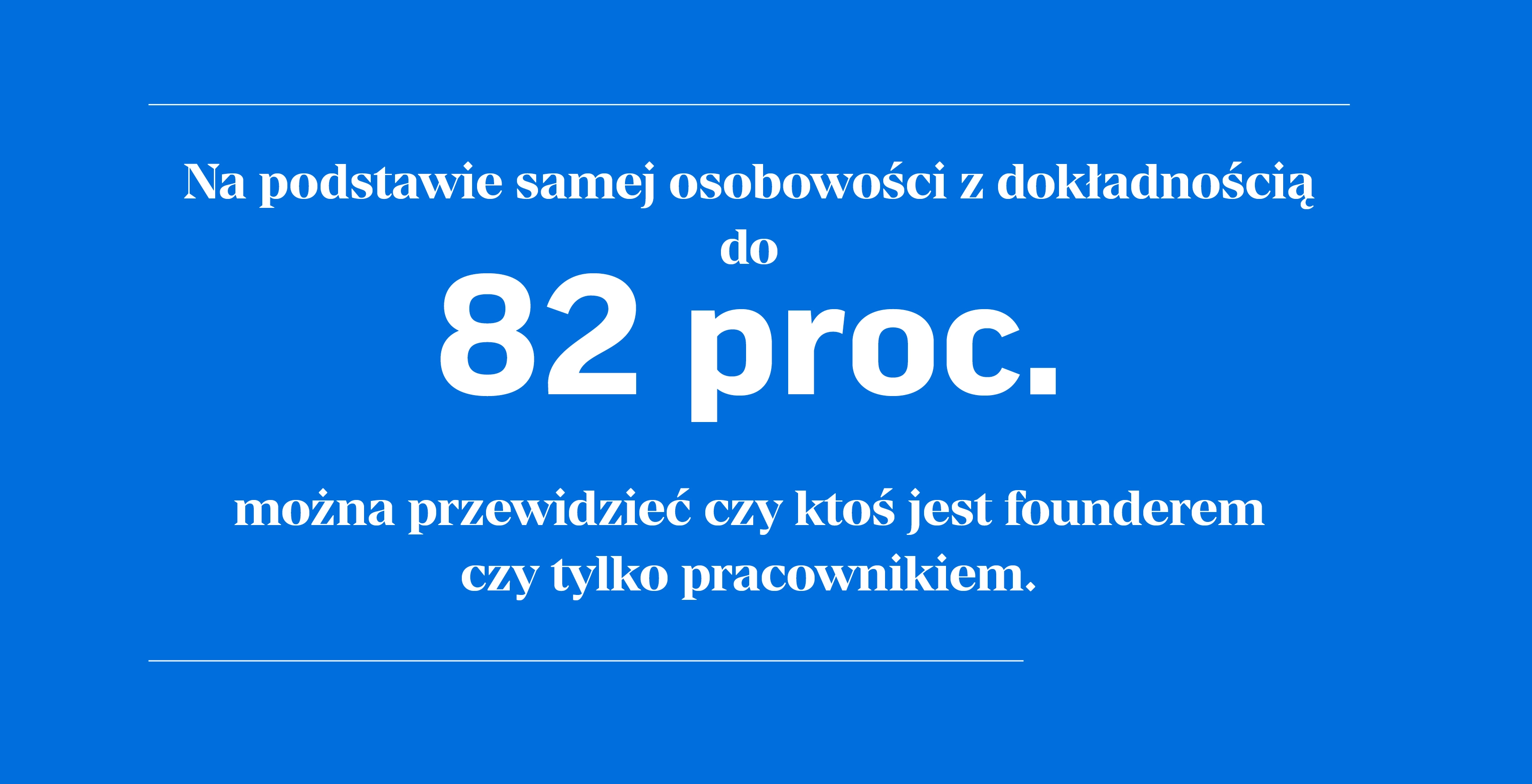 W badaniu “The impact of founder personalities on startup success” opublikowanym w „Nature” naukowcy wzięli pod lupę ponad 21 tys. startupów i profile społecznościowe niemal 33 tys. founderów i korzystając z psychologicznego modelu Wielkiej Piątki (ang. Big Five), który przyjmuje, że osobowość człowieka składa się z pięciu głównych składowych: neurotyczności, ekstrawersji, otwartości na doświadczenie, ugodowości i sumienności, szukali cech, które gwarantują sukces startupów. Za sukces uznawali wejście na giełdę, sprzedaż firmy lub przejęcie innej.
