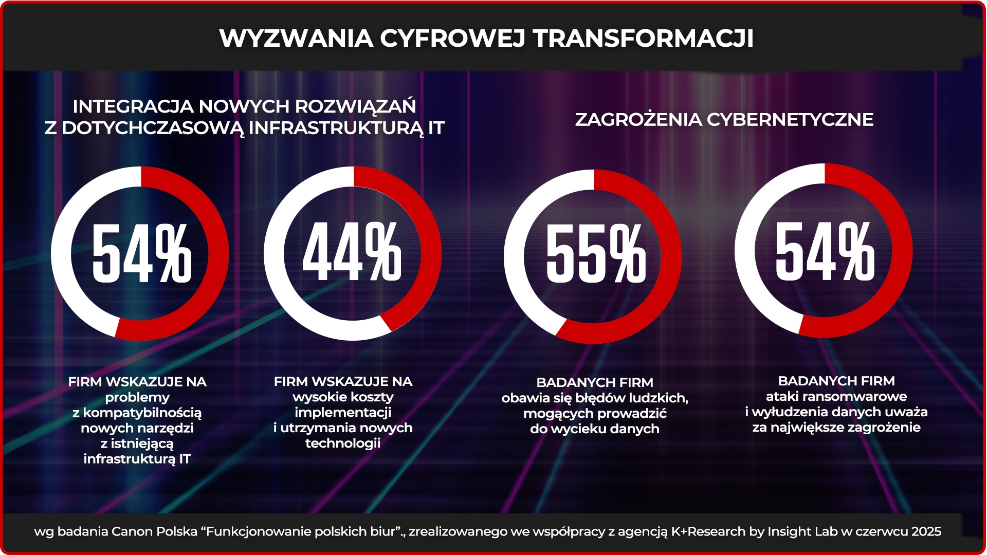 Ponad połowa firm wskazuje na problemy z integracją nowych rozwiązań z istniejącą infrastrukturą IT, a 44 proc. – na wysokie koszty wdrożenia i utrzymania systemów. To główne bariery technologiczne, które wciąż spowalniają tempo cyfrowej transformacji.